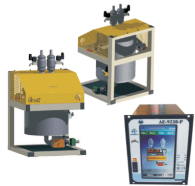Para dosificar la proporción correcta de agua reciclada frente agua de red es indispensable conocer la densidad de la misma. Por ello, hemos fabricado un conjunto compacto formado por una báscula y un cuadro de control, en el que se incluye el equipo de control AE-9220P.DEN, el cual es el encargado de la automatización del proceso de pesaje, calibración, control y obtención de la densidad del agua reciclada a procesar.